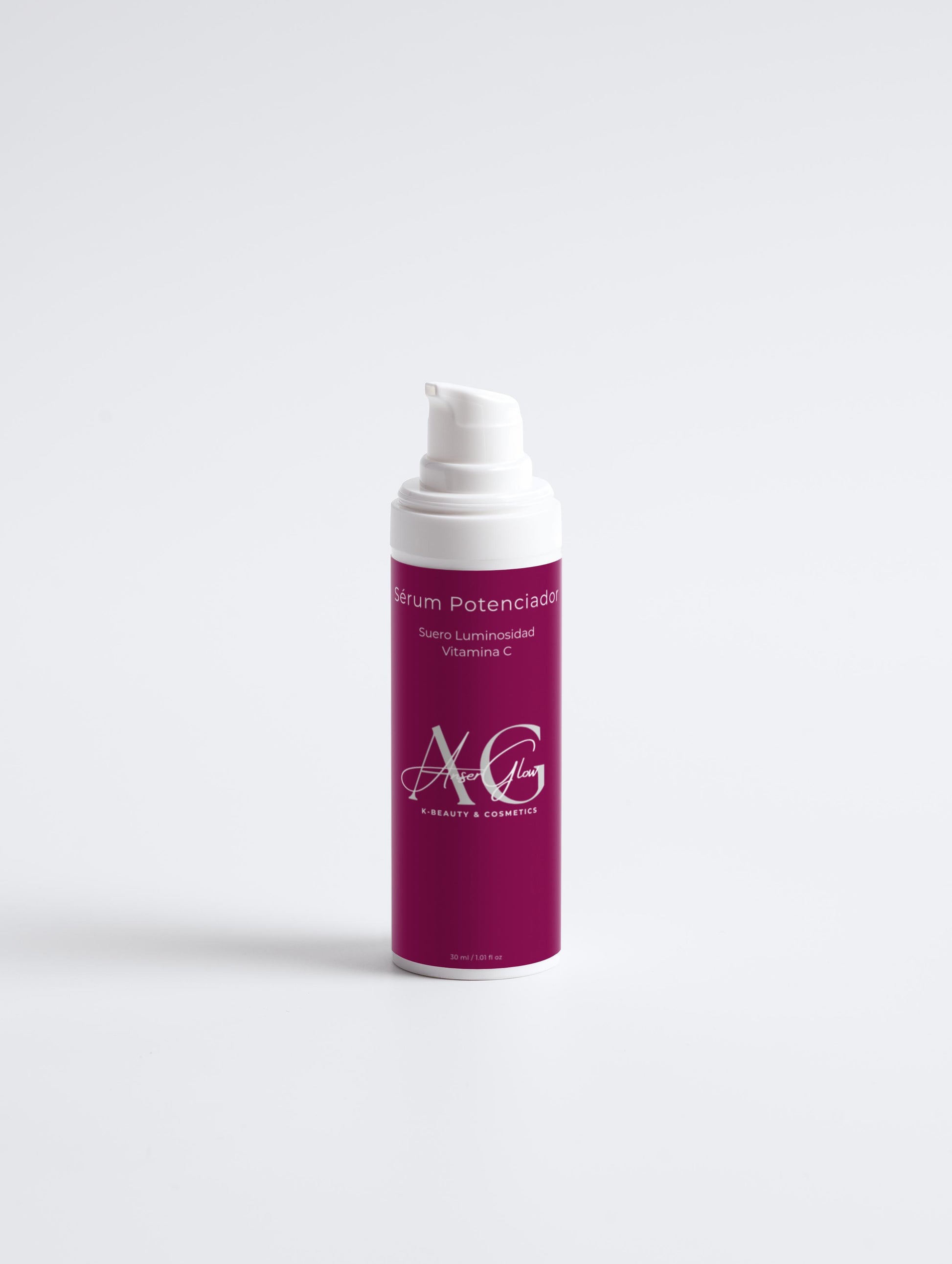 Sérum Potenciador. Suero Luminosidad. Vitamina C : una potente mezcla de 2 % de vitamina C natural, ácido ferúlico y espino amarillo, este potenciador energizante ayuda a proteger la piel contra los factores estresantes ambientales al mismo tiempo que ilumina y unifica el tono de la piel.